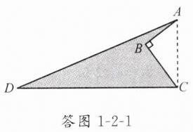 解:如答图1 - 2 - 1,连接AC. 因为△ABC中,∠B = 90°,AB = 3,BC = 4, 所以AC = $\sqrt{3² + 4²}$ = 5. 因为CD = 12,AD = 13,AC = 5, 所以AC² + CD² = AD², 所以△ACD是直角三角形, 所以$S阴影$ = $S_{△ACD}$ - $S_{△ABC}$ = 1/2 × 5 × 12 - 1/2 × 3 × 4 = 30 - 6 = 24.