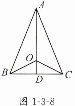3. (1)如图1-3-8,在△ABC中,AB = AC,O为△ABC内一点,且OB = OC,求证:直线AO垂直平分BC.