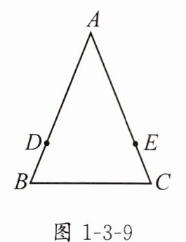 (2)如图1-3-9,在△ABC中,AB = AC,点D,E分别在AB,AC上,且BD = CE,请你只用无刻度的直尺画出BC边的垂直平分线,并说明理由.