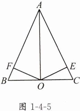 6. 如图1-4-5,点O是BC边的中点,AO平分∠BAC,OE⊥AC于点E,OF⊥AB于点F.