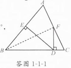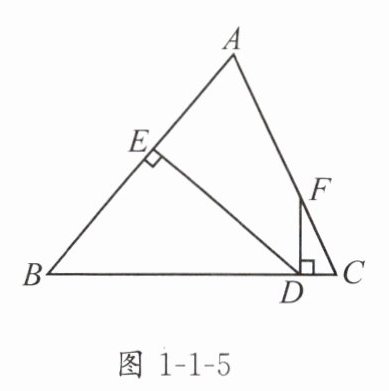 7. 如图1-1-5,在$\triangle ABC$中,$AB = BC$,$D$为$BC$上一点,作$DE\perp AB$于点$E$,作$DF\perp BC$于点$D$,交$AC$于点$F$.