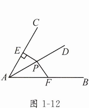 5. 如图1 - 12,点P是∠BAC的平分线AD上一点,PE⊥AC于点E,且AP = 2√3,∠BAC = 60°,有一点F在边AB上运动,当点F运动到某一位置时△FAP面积恰好是△EAP面积的2倍,则此时AF的长是________.
