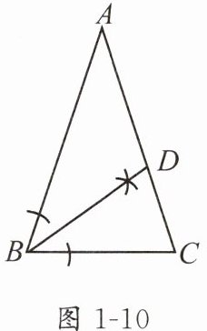 3. 如图1 - 10,在△ABC中,AB = AC,∠A = 36°,若按如图的尺规作图方法作出线段BD,则下列结论错误的是( ).