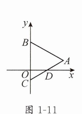 4. 如图1 - 11,在平面直角坐标系中,点B,C在y轴上,△ABC是等边三角形,AB = 4,AC与x轴的交点D的坐标是(√3,0),则点A的坐标为 ________.