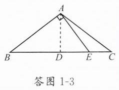 6. 如图1 - 13,在△ABC中,AB = AC = 4,点E在边BC上且AE = 3,∠BAE = 90°,求CE的长.