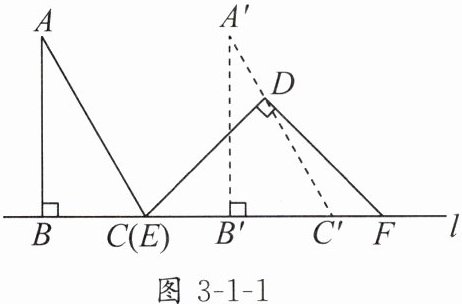3. 把一副直角三角尺如图3 - 1 - 1摆放,点C与点E重合,BC边与EF边都在直线l上,将△ABC向右平移得△A'B'C',当边A'C'经过点D时,∠EDC'=______°.
