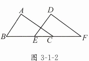 4. 如图3 - 1 - 2,△ABC沿BC所在直线向右平移得到△DEF,已知EC=2,BF=8,则平移的距离为 ______.