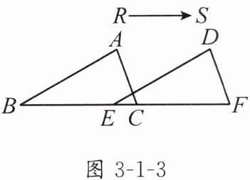 5. 如图3 - 1 - 3,在△ABC中,BC=5,∠A=80°,∠ACB=70°,把△ABC沿RS的方向平移到△DEF的位置,若CF=4,则下列结论错误的是( ).