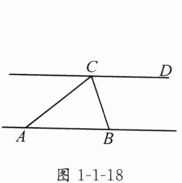 1. 如图1-1-18,直线$AB// CD$,$CB$平分$\angle ACD$,若$AC = 3\ cm$,则$AB$的长度为( ).