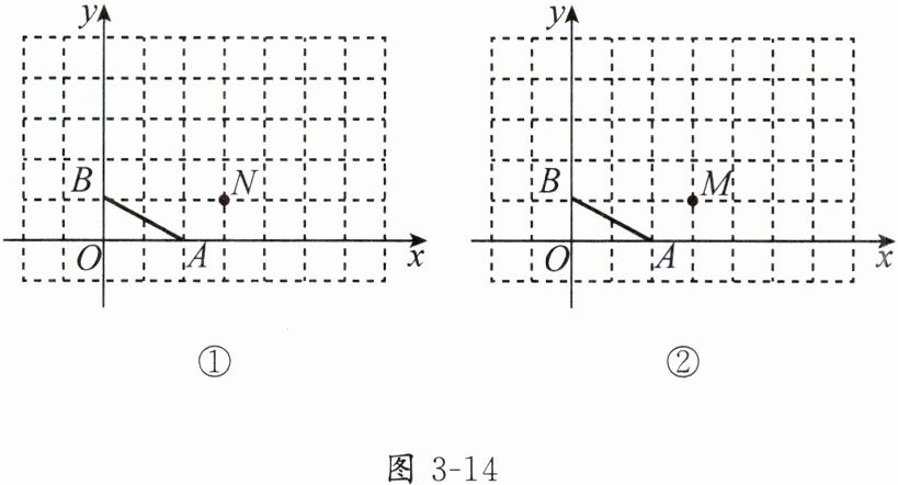 (1)如图3-14①,若点N的坐标是(3,1),则点M的坐标为________,请画出平移后的线段MN;