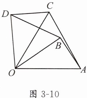 2. 如图3-10,将△OAB绕O点逆时针旋转60°得到△OCD,若OA = 4,∠AOB = 35°,则下列结论不一定正确的是( ).