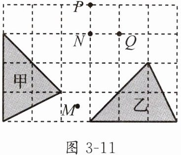 3. 如图3-11,在6×4的方格纸中,格点三角形甲经过旋转后得到格点三角形乙,则其旋转中心是( ).
