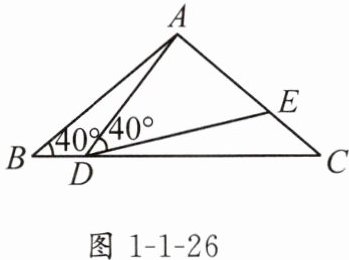 3. 如图1-1-26,在$\triangle ABC$中,$AB = AC = 2$,$\angle B=\angle C = 40^{\circ}$,点$D$在线段$BC$上运动($D$不与$B$,$C$重合),连接$AD$,作$\angle ADE = 40^{\circ}$,$DE$交线段$AC$于点$E$.