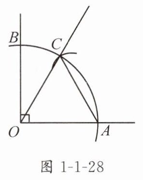 3. 如图1-1-28,用圆规以直角顶点O为圆心,以适当长度为半径画一条弧交两边于A,B两点,若再以点A为圆心,以OA为半径画弧,与弧AB交于点C,连接OC,则∠AOC等于________.