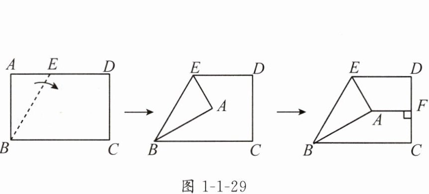 4. 如图1-1-29,在长方形ABCD中,点E在AD上,沿BE将点A向右折叠,再作AF⊥CD于点F,若AB = 2,BC = 3,∠BEA = 60°,则AF的长度为__________.