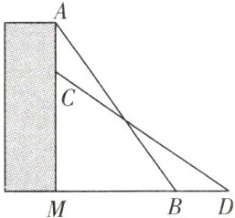 3. 某校数学小组为测量校内攀岩墙 AM 的高度,设计了如下方案:如图所示,首先找一根长度大于 AM 的直杆,使直杆斜靠在墙上,且顶端与点 A 重合,记录直杆与地面的夹角∠ABM = 55°,然后使直杆顶端沿墙面竖直缓慢下滑,直到∠MDC = 35°,标记此时直杆的底端点 D,最后测得 DM = 7 m,则攀岩墙的高度 AM = ______ m。