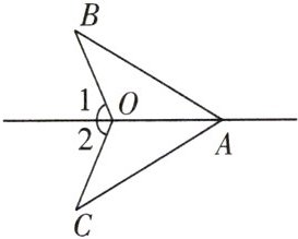 2. 如图所示,要使△AOB≌△AOC,在∠1 = ∠2 的情况下,还需添加一个条件是______(填一个即可)。