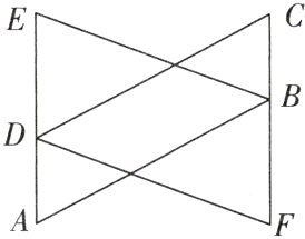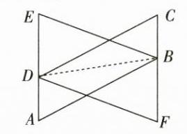 7. 如图所示,已知 A,D,E 三点共线,C,B,F 三点共线,AB = CD,AD = CB,DE = BF,那么 BE 与 DF 之间有什么数量关系?请说明理由。