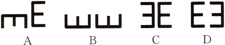 2. 视力表中的字母“E”有各种不同的摆放形式,下面各种组合中的两个字母“E”不能关于某条直线成轴对称的是 ( )