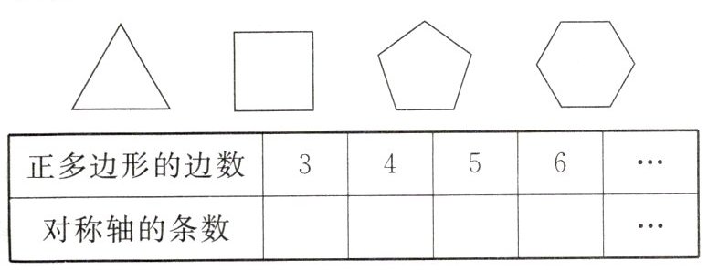 4. 画出下列正多边形的所有对称轴,并完成表格。