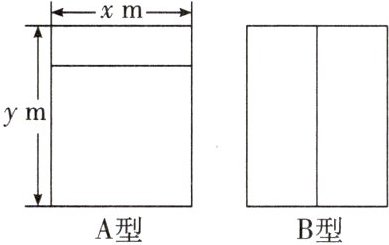 2. 如图所示是用相同材料制作的A,B两种造型的长方形窗框,已知窗框的宽都是$x m$,长都是$y m$。