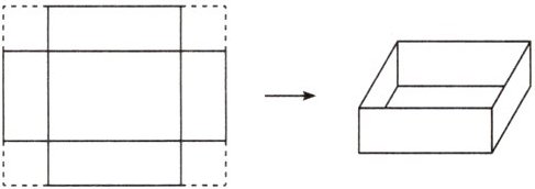 例2 如图所示,一块长方形硬纸片,长为$5a^{2}+4b^{2}$,宽为$6a^{4}$,在它的四个角上分别剪去一个边长为$\frac{3}{2}a^{3}$的小正方形,然后折成一个无盖的盒子,求这个无盖盒子的表面积。