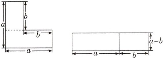 解:由题图,知长方形纸片的面积为 $S_{长方形} = (a + b)(a - b)$,L形纸片的面积为 $S_{L形} = a^{2} - b^{2}$。因为 $S_{长方形} = S_{L形}$,所以 $(a + b)(a - b) = a^{2} - b^{2}$。