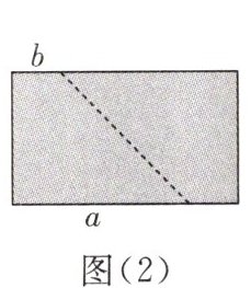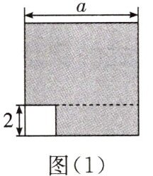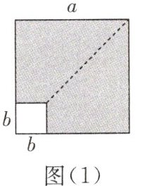 例1 在边长为$a$的正方形中剪去一个边长为$b$的小正方形$(a > b)$,如图(1)所示,把余下部分沿虚线剪开拼成一个长方形,如图(2)所示。