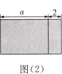 (1)图(2)中阴影部分的长是$\underline{\quad\quad}$,宽是$\underline{\quad\quad}$,这个长方形的面积为$\underline{\quad\quad}$;