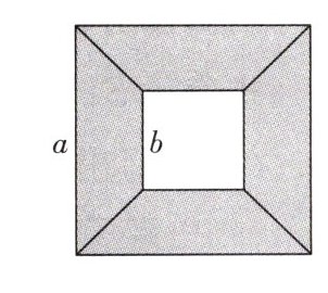 2. 如图所示,边长为$a$的大正方形由1个边长为$b$的小正方形和4个形状、大小完全相同的梯形组成。