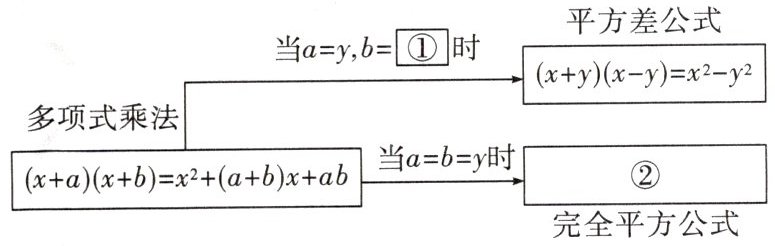 7. 小聪同学在学习了“整式的乘法”“乘法公式”两节课后,发现学习内容是逐步特殊化的过程,请在横线上填写适当的代数式,感受这种特殊化的学习过程。