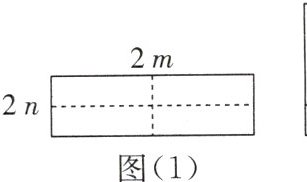 例2 如图(1)所示的是一个长为$2m$,宽为$2n$的长方形,沿图中虚线用剪刀均分成四个小长方形,然后按图(2)的方式拼成一个正方形。