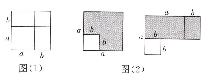 3. (1)课本再现:图(1)、图(2)应用“等积法”验证了乘法公式,是“数形结合”的典型实例。图(1)验证的是$\underline{\quad\quad}$;图(2)验证的是$\underline{\quad\quad}$。