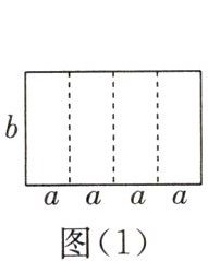 6. 如图(1)所示是一个长为$4a$,宽为$b$的长方形,沿图中虚线用剪刀平均分成四个小长方形,然后用四个小长方形拼成一个如图(2)所示的大正方形。