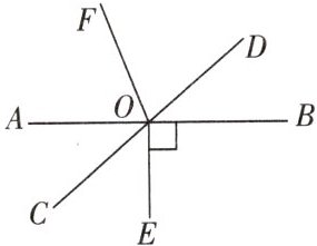 8.(2024 汕头期中)如图所示,直线 $AB$、$CD$ 相交于点 $O$,$OE\perp AB$,$OF$ 平分 $\angle AOD$。
