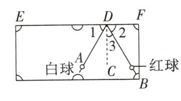 6. [教材习题变式]如图所示,打台球时,选择适当的方向击打白球,白球反弹后击中红球,红球会直接入袋。已知 $CD\perp EF$,$\angle 1 = 60^{\circ}$。