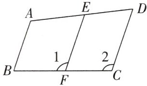 因为∠1 = ∠2,所以 EF//CD(同位角相等,两直线平行)。