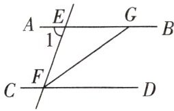 4. 如图所示,已知直线$AB// CD$,直线$EF$分别交直线$AB$,$CD$于点$E$,$F$,点$G$为$AB$上一点,连接$FG$,$FG$平分$\angle EFD$,$\angle EGF = 35^{\circ}$,求$\angle1$的度数。