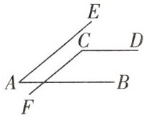 5. 如图所示,$AB// CD$,$AE// CF$,若$\angle A = 40^{\circ}$,则$\angle C$的度数为________。