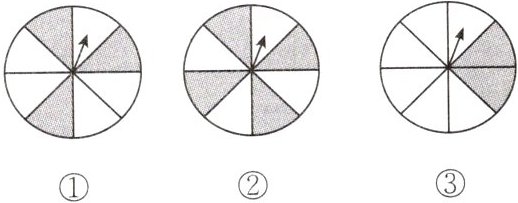 3. 如图所示,转动三个可以自由转动的转盘(转盘均被等分),当转盘停止转动后,根据“指针落在灰色区域内”的可能性的大小,将转盘的序号按事件发生的可能性从大到小排列为________(填序号)。