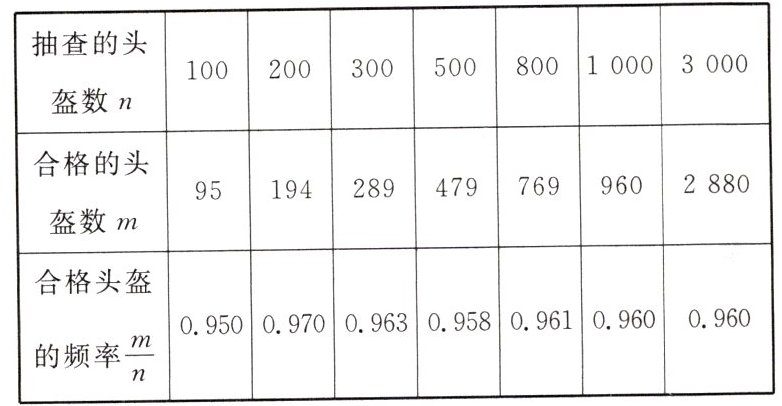 1. 质检部门对某工厂生产的头盔质量进行抽查,抽查结果如表: