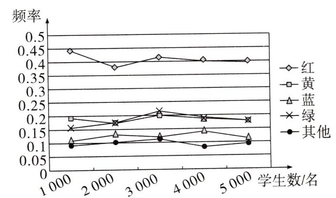 (2) 估计调查到10 000名中学生时,红色的频率仍是0.4。