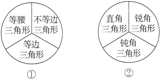 1. 下列两种图示均表示三角形的分类,则正确的是( )