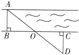 1. (2024 沈阳月考)小轩用如图所示的方法测量小河的宽度 AB(AB⊥BC)。他利用适当的工具,使 BO = OC,CD⊥BC,点 A,O,D 在同一直线上,这样就能保证△ABO≌△DCO,从而测量 CD 的长度可得小河的宽度 AB。在这个问题中,可作为判定△ABO≌△DCO 的依据的是( )