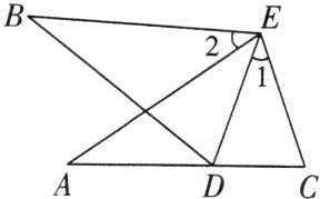 所以∠1 + ∠AED = ∠2 + ∠AED,