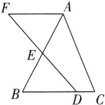 2. (2024 汕头月考)如图所示,在△ABC 中,点 D 在边 BC 上,点 E 在边 AB 上,AE = BE,AF//BC,AF 交 DE 的延长线于点 F,若 AF = 24,BD = 3CD,则 BC 的长为 。