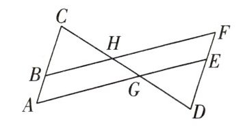 3. 如图所示,AC//DF,点 B 为线段 AC 上一点,连接 BF 交 DC 于点 H,过点 A 作 AE//BF 分别交 DC,DF 于点 G,E,DG = CH。试说明△DFH≌△CAG。
