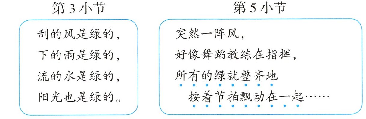 一、朗读《绿》第3、第5小节的内容,完成下面的练习