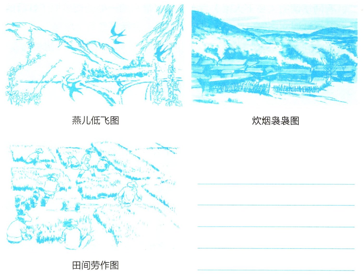 二、你眼中的乡村景致是怎样的?请选择一个画面,用一段话写下来