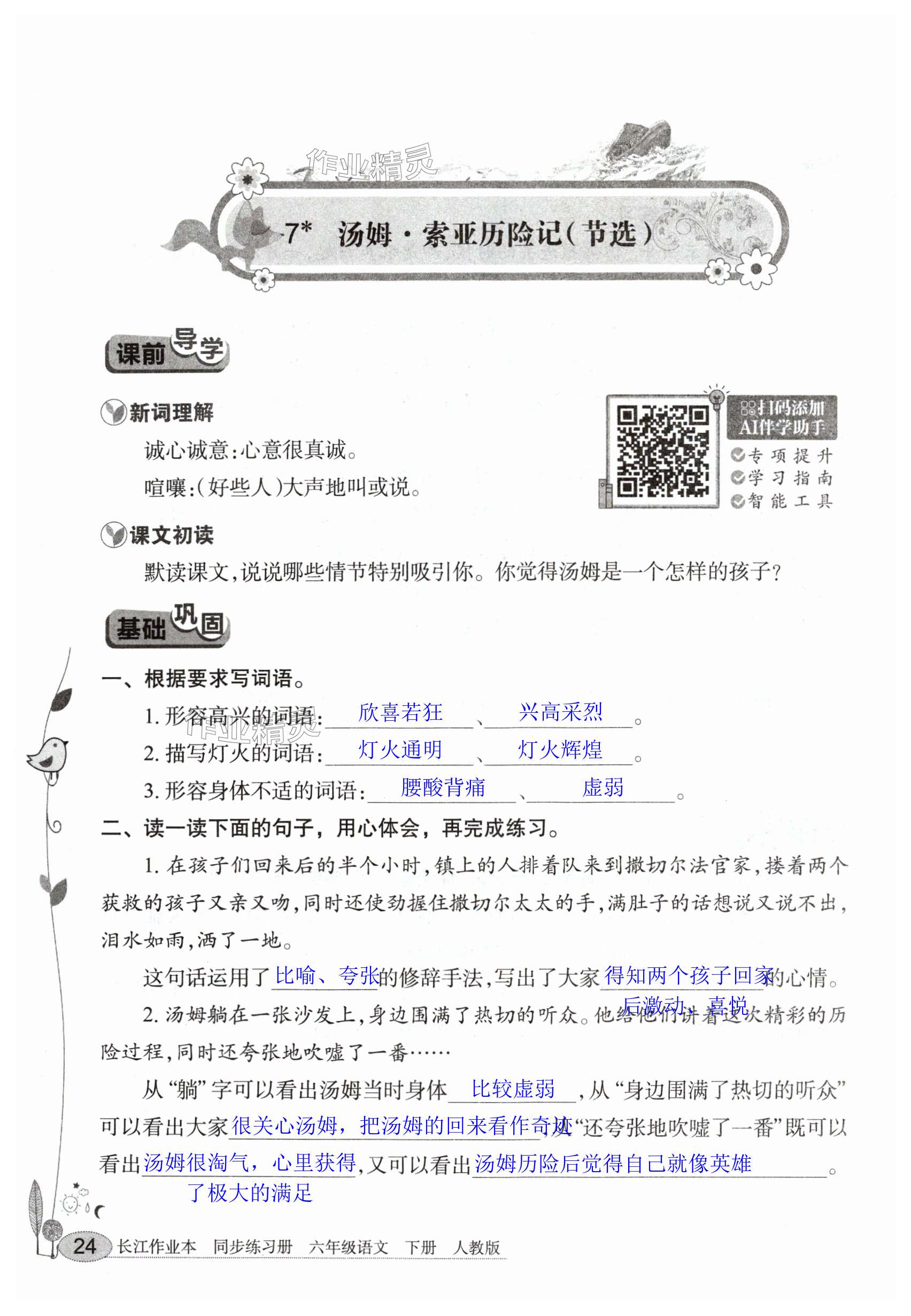 注:目前有些书本章节名称可能整理的还不是很完善,但都是按照顺序排列的,请同学们按照顺序仔细查找。练习册 2025年长江作业本同步练习册六年级语文下册人教版 答案主要是用来给同学们做完题方便对答案用的,请勿直接抄袭。